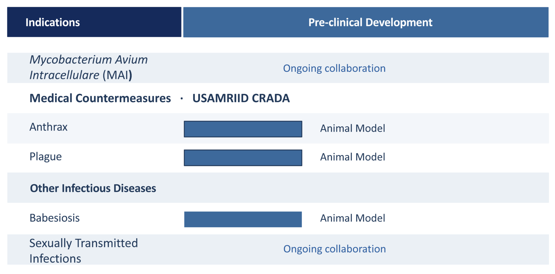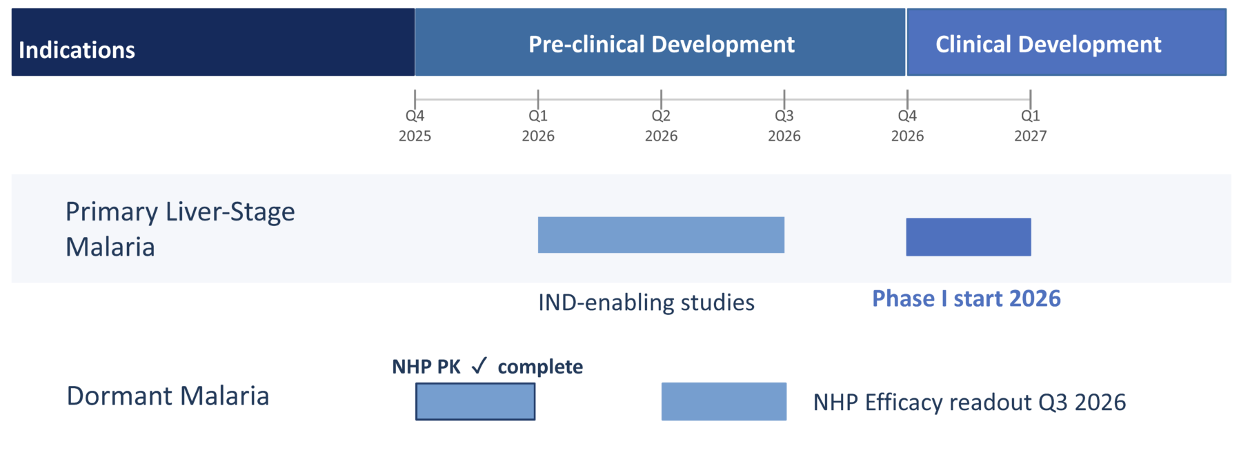 Additional indications are supported by historical data and ongoing scientific collaborations, including select intracellular infectious diseases and biodefense-related pathogens; however, AliquantumRx is initially focused on achieving human proof-of-concept in liver-stage malaria.